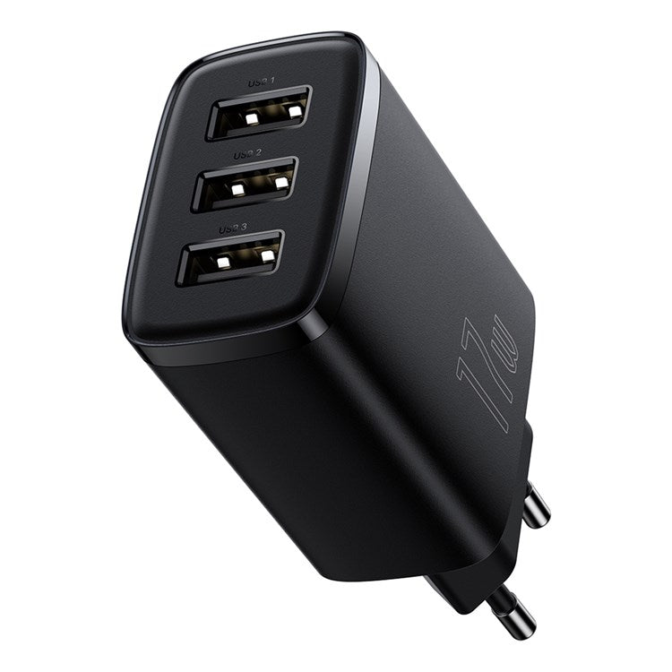 BASEUS Compact Charger with 3 USB Ports Wall Charger 17W Power Adapter, EU Plug - Black
