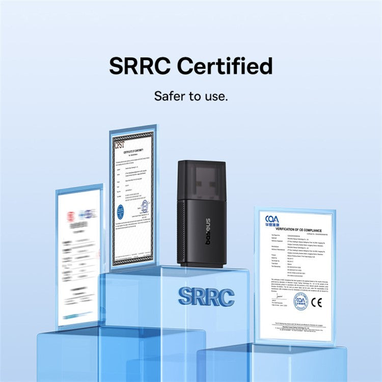 BASEUS FastJoy Series 650Mbps High Speed 2.4G / 5G Dual Band WiFi Adapter with Built-in Antenna - Black