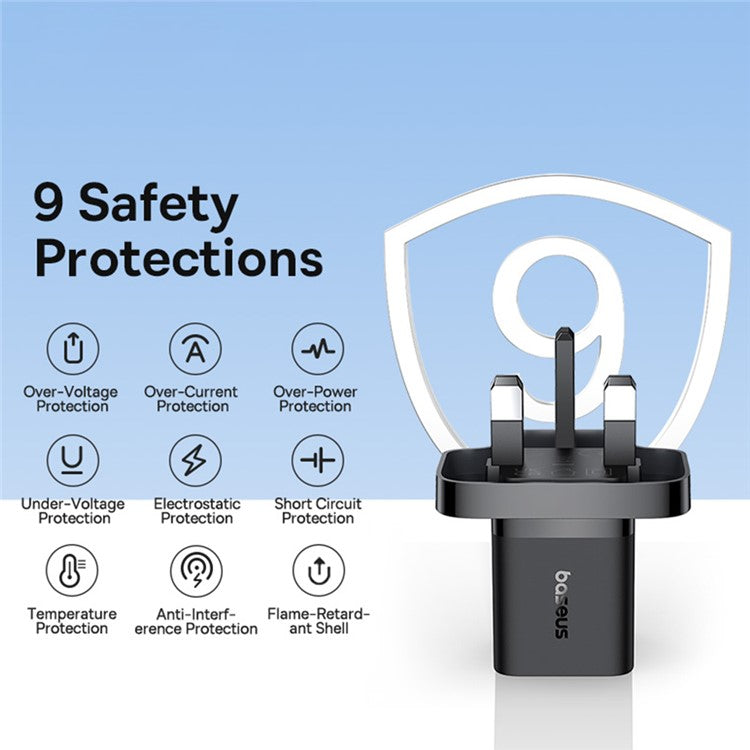 BASEUS GaN5 Fast Charging Adapter Mini Edition Type-C Single Port 30W UK Plug Wall Charger - Black