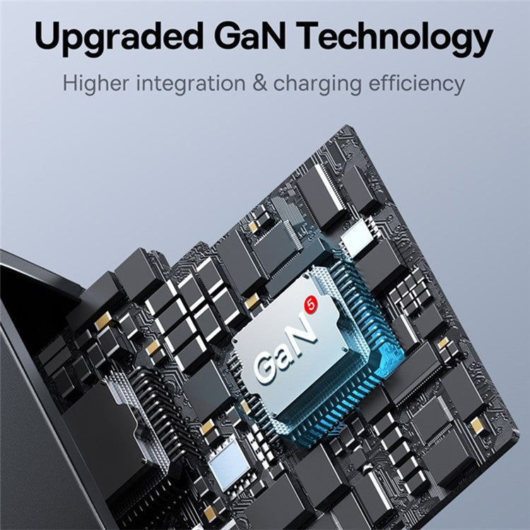 - Advanced GaN5 Technology: Advanced GaN5 technology increases the energy conversion rate and the response speed, and reduces the temperature rise and the size, making it easier to carry around