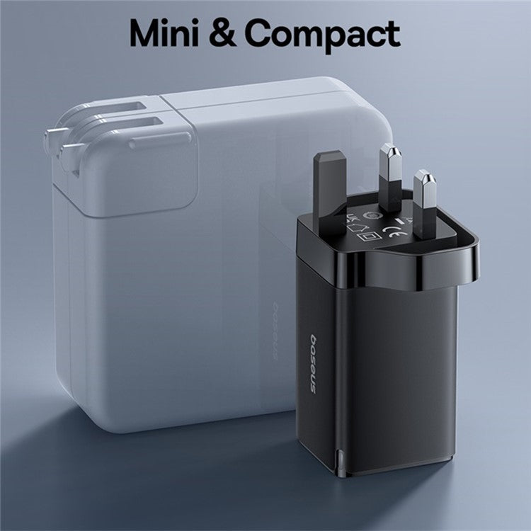 BASEUS GaN5 Pro Fast Charger 2 Type-C+USB-A 65W UK Plug Charging Adapter, with Type-C to Type-C Cable 100W (20V / 5A) 1m - Black