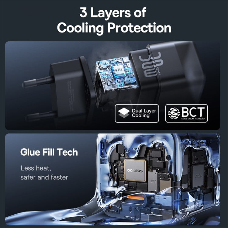 BASEUS GaN5S Fast Charger 1C 30W Travel Wall Charger Phone Adapter, EU Plug - Black