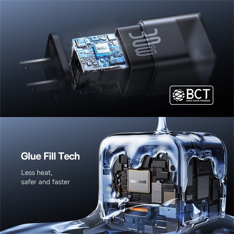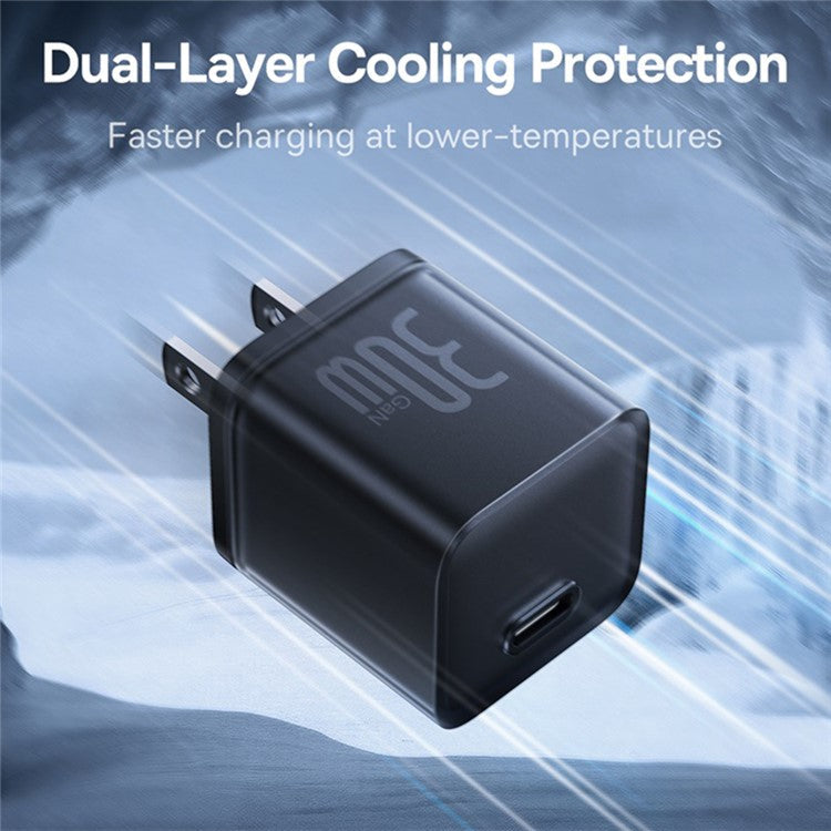 BASEUS GaN5S Fast Charger Portable Type-C 30W Wall Charger Adapter, US Plug - Black