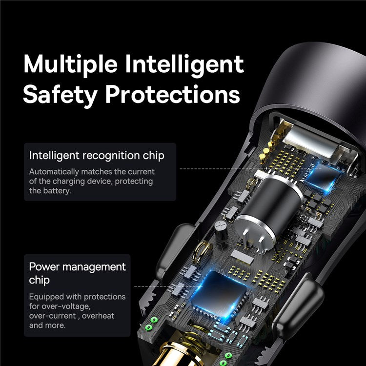 BASEUS Golden Contactor Max USB+Type C 60W Dual Output Fast Charger Universal Car Charger for Cell Phone Camera Tablets Laptops - Dark Grey