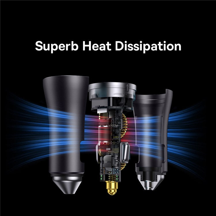 BASEUS Golden Contactor Pro 40W Max Type C + Type-C Dual Ports Fast Charging Car Charger - Dark Grey