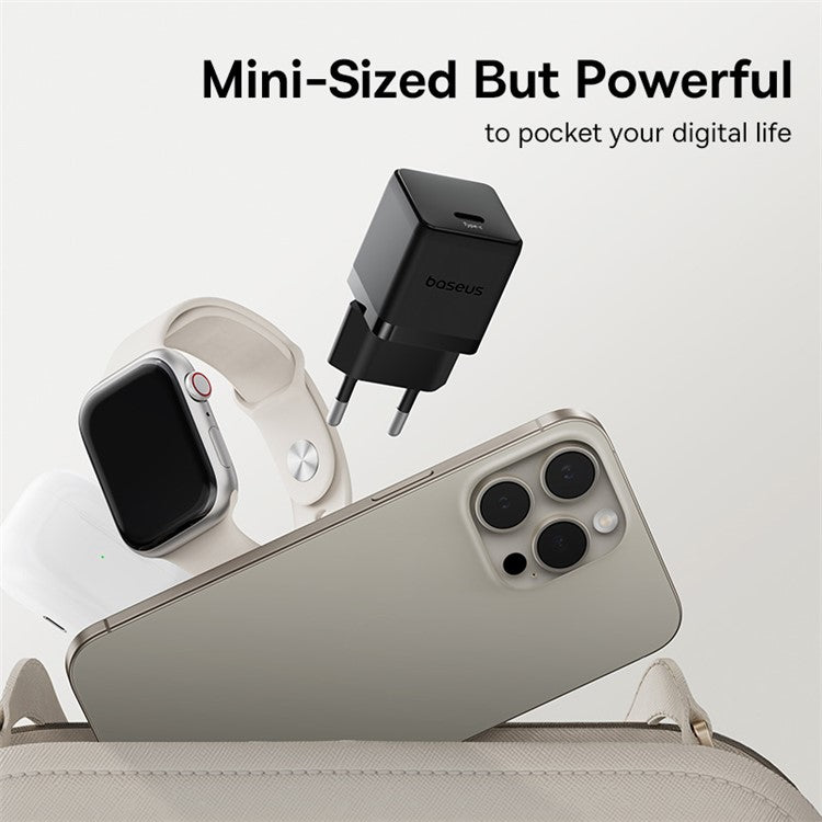 BASEUS Palm Fast Charger 30W Type-C Single Port EU Plug Wall Charging Adapter with 60W Type-C Cable - Black