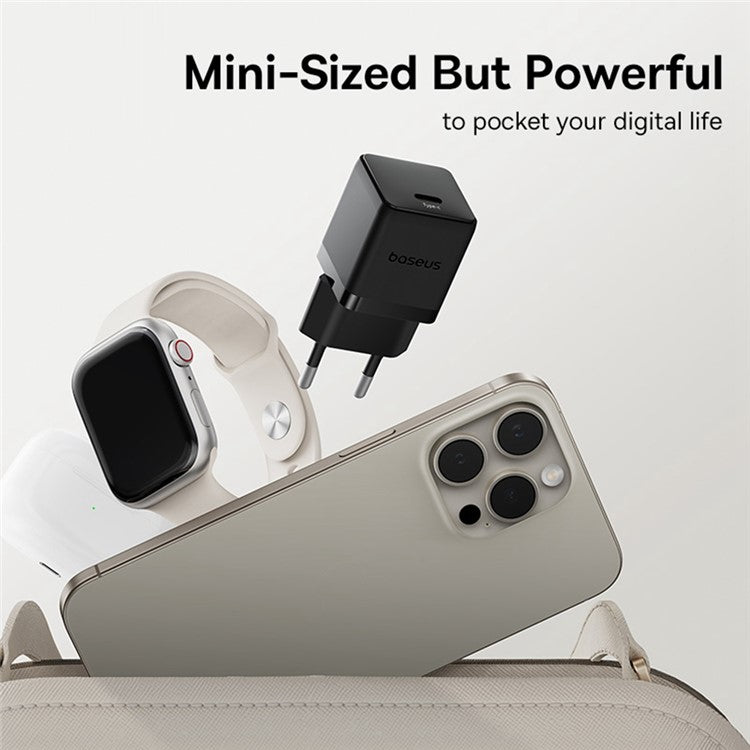 BASEUS Palm Fast Charger 30W Type-C Single Port Portable Wall Charging Adapter, EU Plug - Black