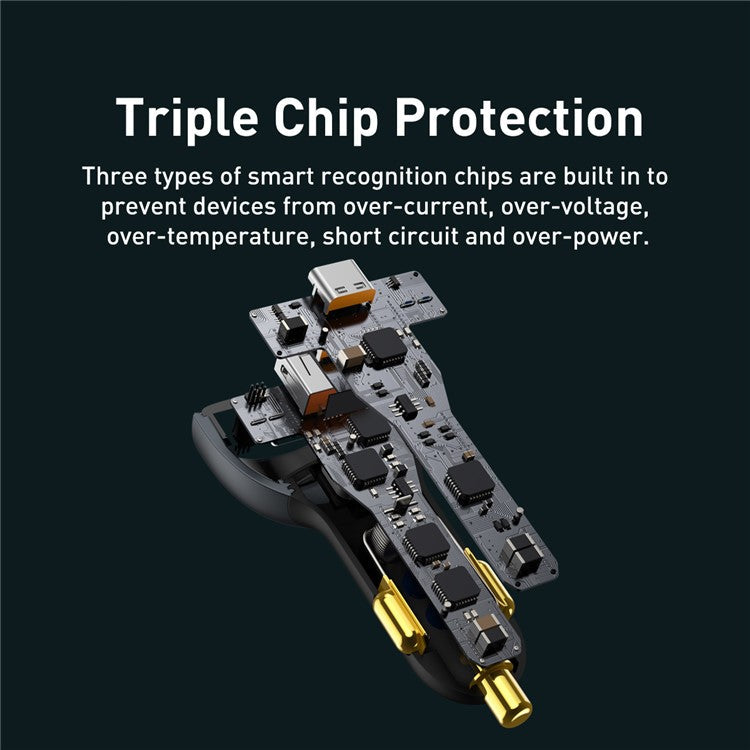 BASEUS Qualcomm QC 5.0 Technology Multi-Port Fast Charge Car Charger Type-C+Type-C+USB 160W Power Adapter with Type-C Cable