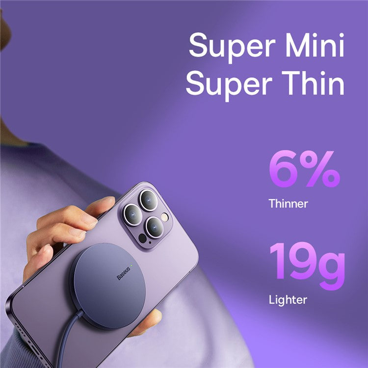 BASEUS Simple Mini3 Magnetic Wireless Charger Slim Lightweight 15W Charging Pad with 1.2m Charging Cable - Purple