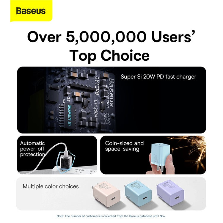 BASEUS Super Si Quick Charger Type-C Port 20W CN Plug Power Adapter - Blue