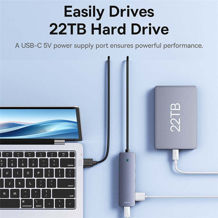 BASEUS UltraJoy Series BS-OH080 200cm 4-Port USB3.0 HUB Lite Adapter Docking Station with Type-C 5V, Dark Grey