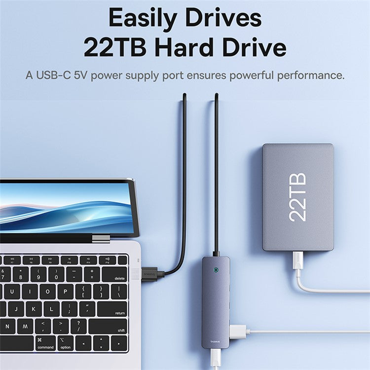 BASEUS UltraJoy Series BS-OH080 50cm 4-Port USB3.0 HUB Lite Mini Docking Station with Type-C 5V, Dark Grey