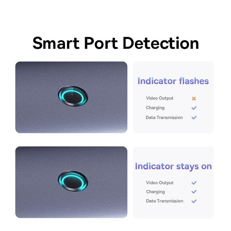 - Smart Port Detection: The indicator will flash if the type-C port on your device does not support screen casting