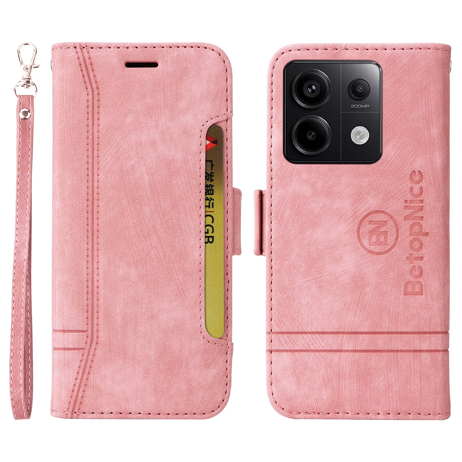 BETOPNICE 001 for Xiaomi Redmi Note 13 Pro 5G / Poco X6 5G Case Leather Wallet Smart Phone Cover - Pink
