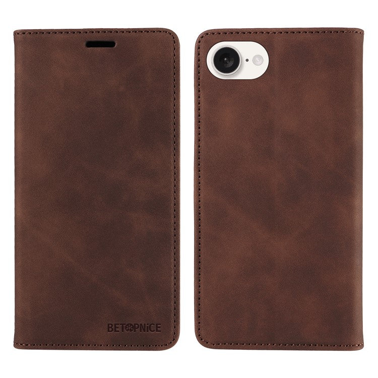 BETOPNICE 003 For iPhone 16e Wallet Case RFID Blocking Leather+TPU Shockproof Phone Shell - Brown