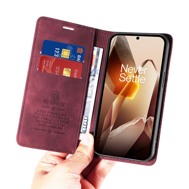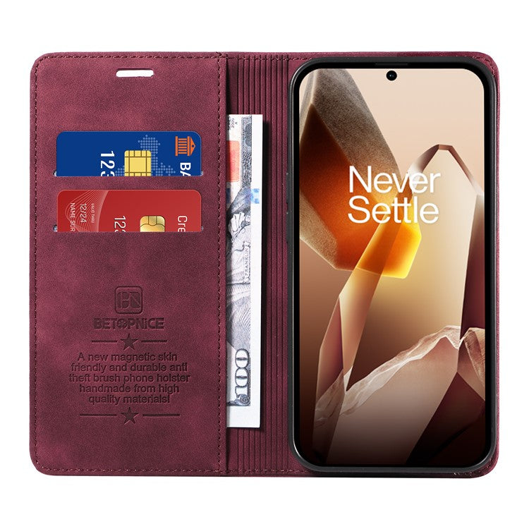 BETOPNICE 003 For OnePlus 13 Wallet Case Leather Phone Cover with Stand - Red