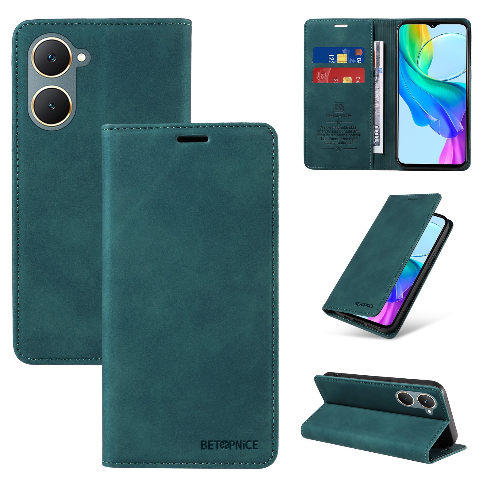 BETOPNICE 003 For vivo Y03 Case RFID Blocking Wallet Leather Flip Phone Cover - Green