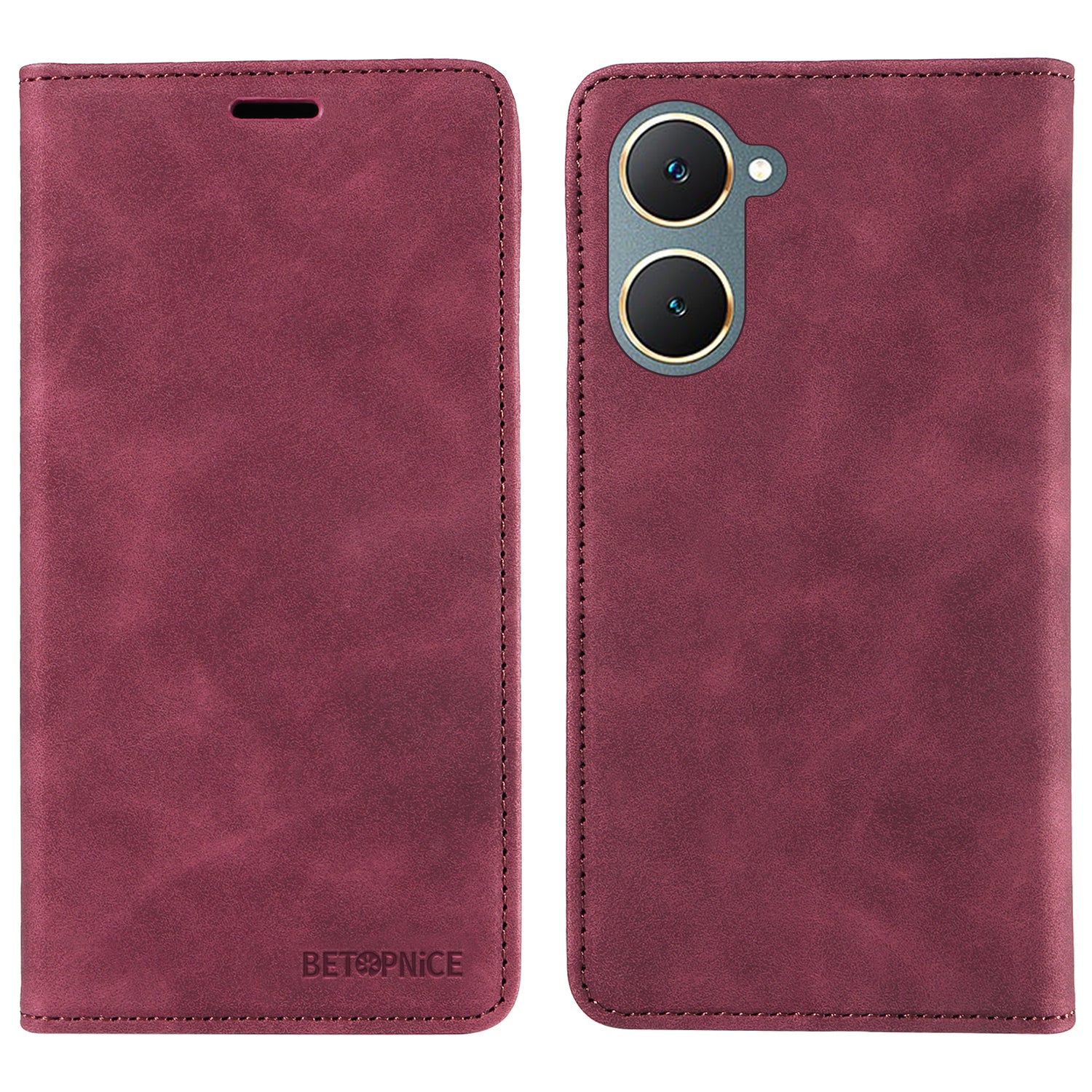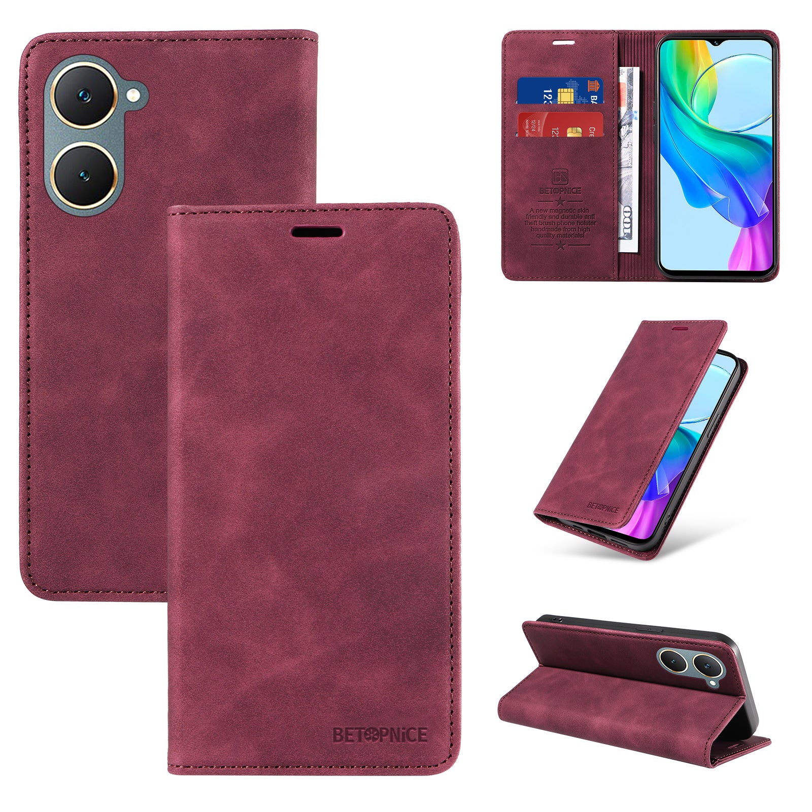 BETOPNICE 003 For vivo Y03 Case RFID Blocking Wallet Leather Flip Phone Cover - Red