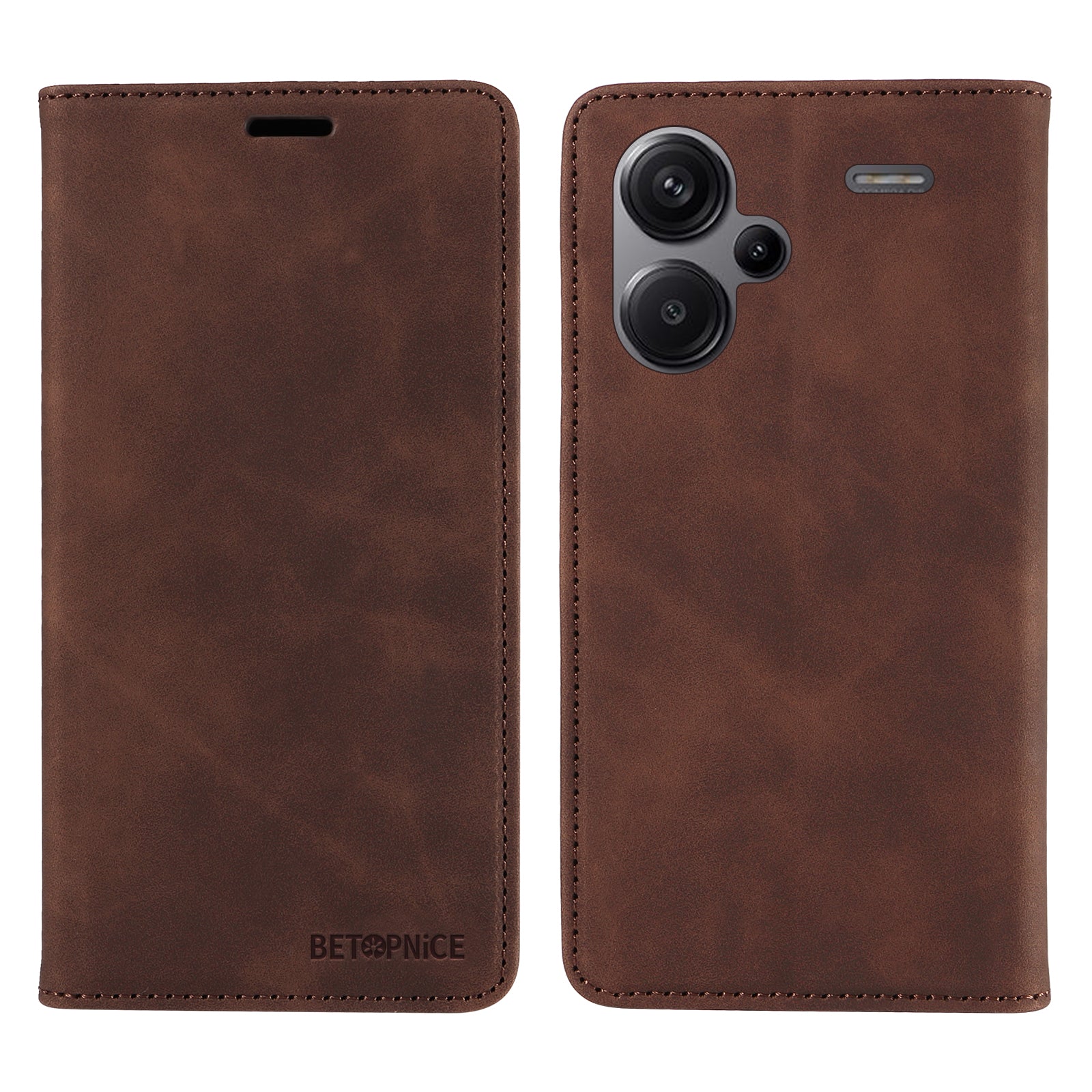 BETOPNICE 003 for Xiaomi Redmi Note 13 Pro+ 5G Wallet Case RFID Blocking Leather Cover - Brown