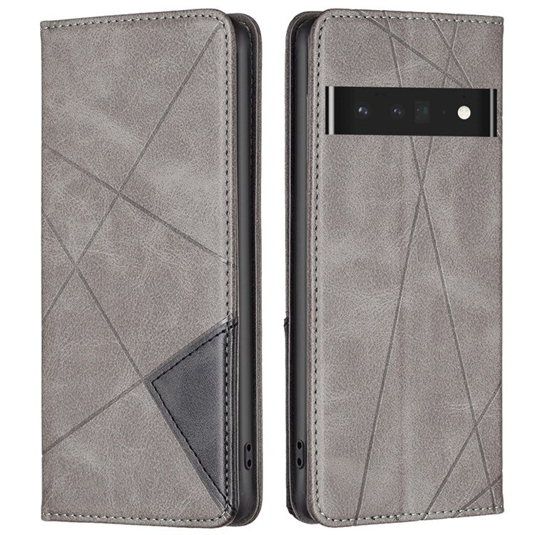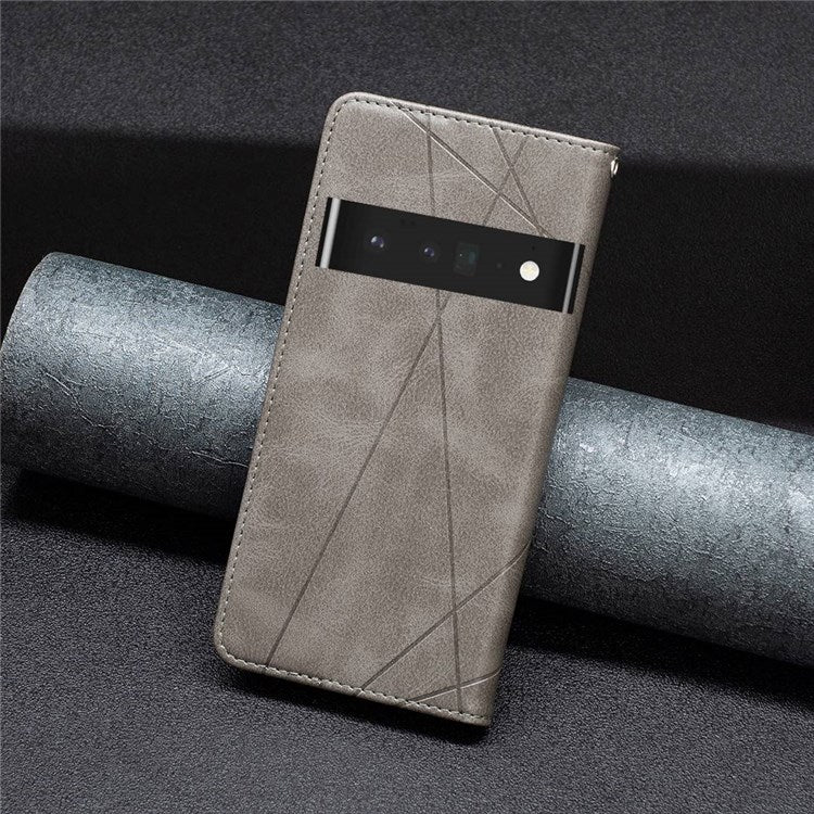 BF Imprinting Pattern Series-1 for Google Pixel 7 Pro 5G PU Leather Flip Cover Rhombus Pattern Imprinte Stand Phone Case with Card Holder - Grey