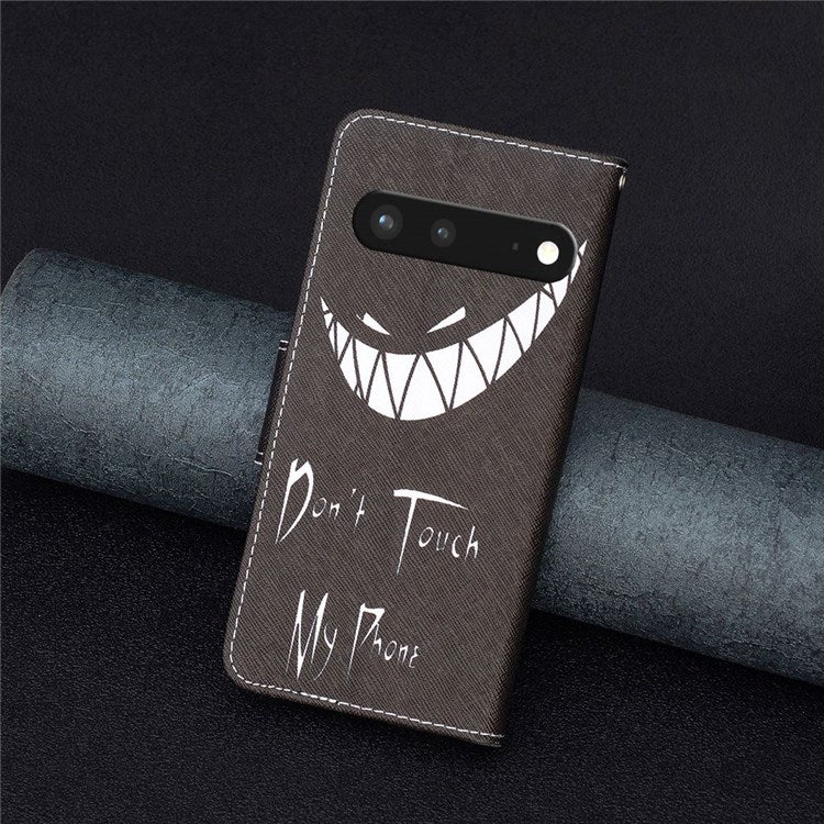 BF Pattern Printing Leather Series-1 for Google Pixel 7 PU Leather Wallet Phone Case Magnetic Clasp Imprinted Pattern Stand Protective Cover - Don't Touch My Phone