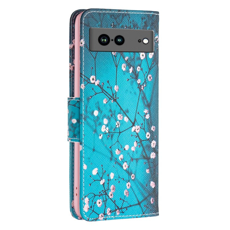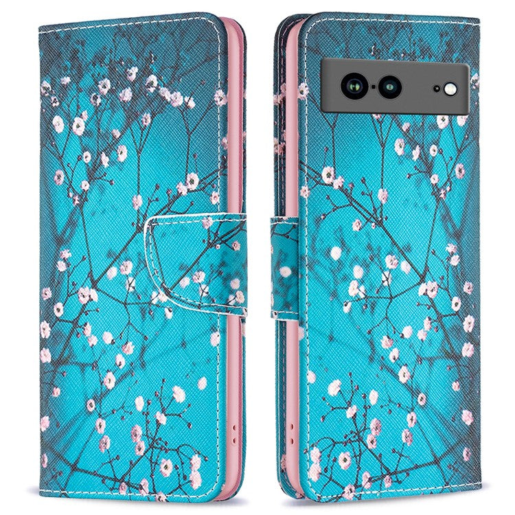 BF Pattern Printing Leather Series-1 for Google Pixel 7a Anti-fall Phone Case Stand PU Leather Wallet Pattern Imprinted Magnetic Closure Flip Phone Cover - Plum Blossom