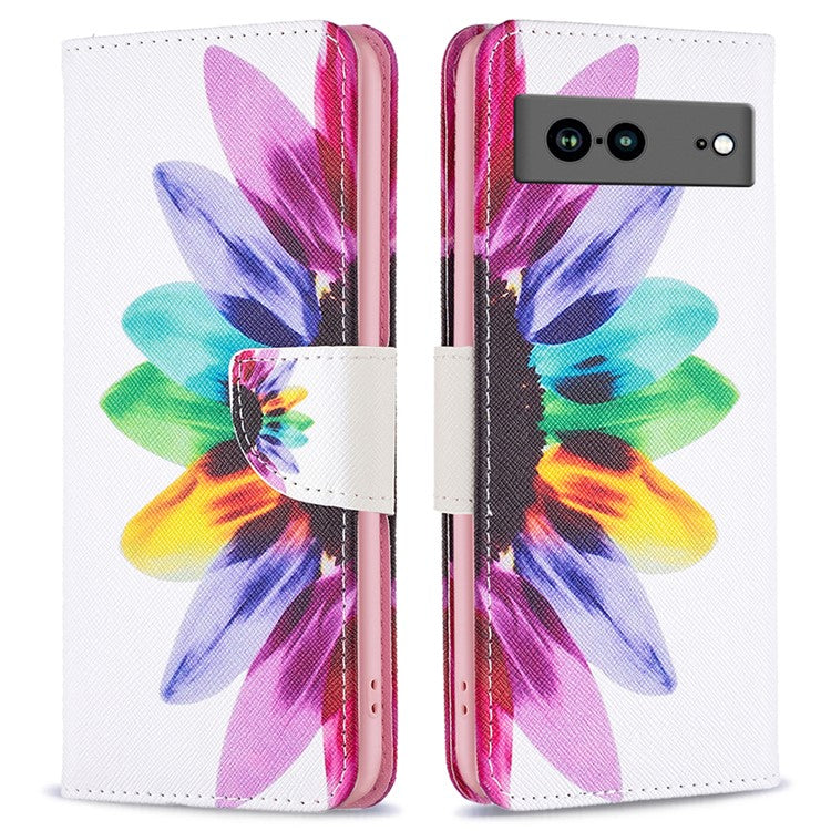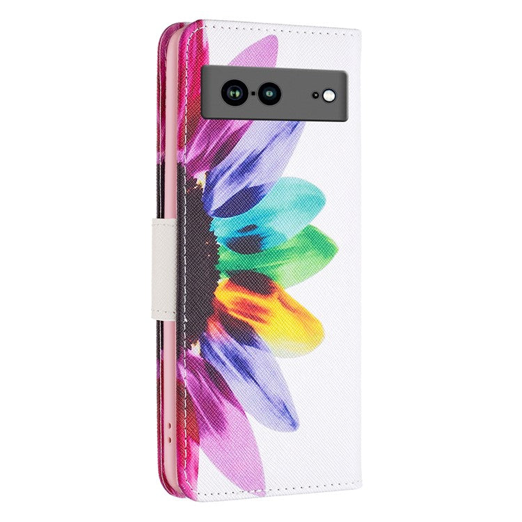 BF Pattern Printing Leather Series-1 for Google Pixel 7a Anti-fall Phone Case Stand PU Leather Wallet Pattern Imprinted Magnetic Closure Flip Phone Cover - Sunflower