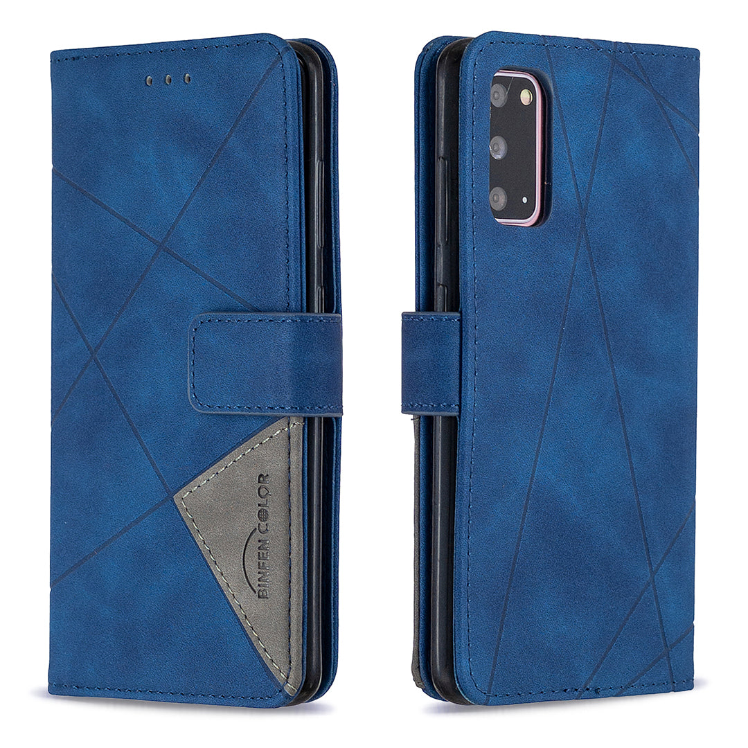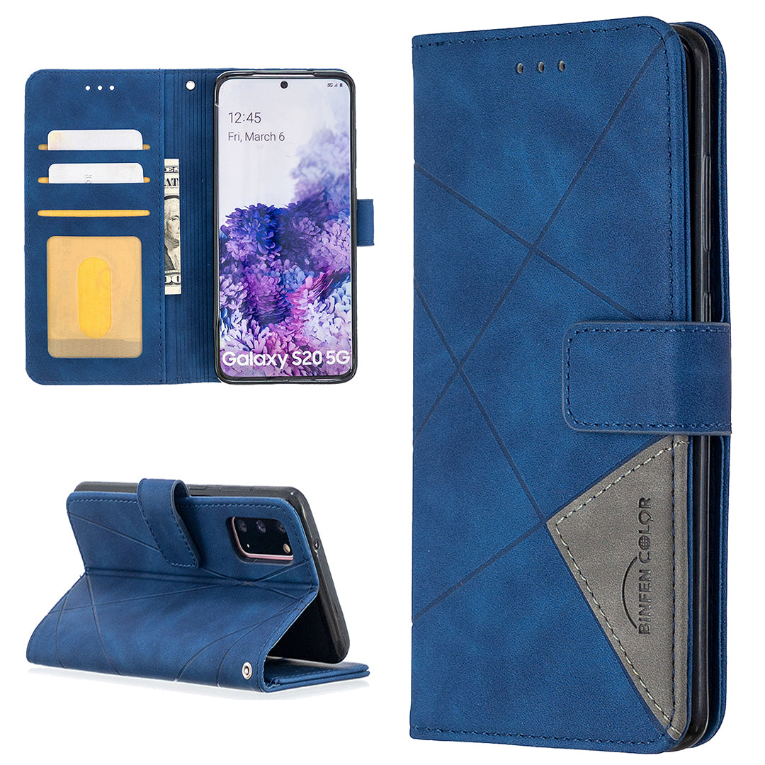 BF05 Style Geometric Texture Leather Cover for Samsung Galaxy S20 4G/S20 5G - Blue