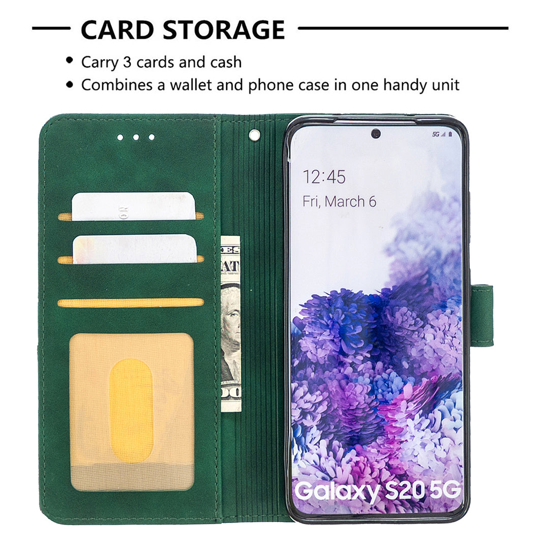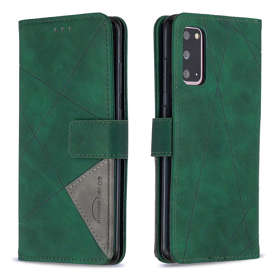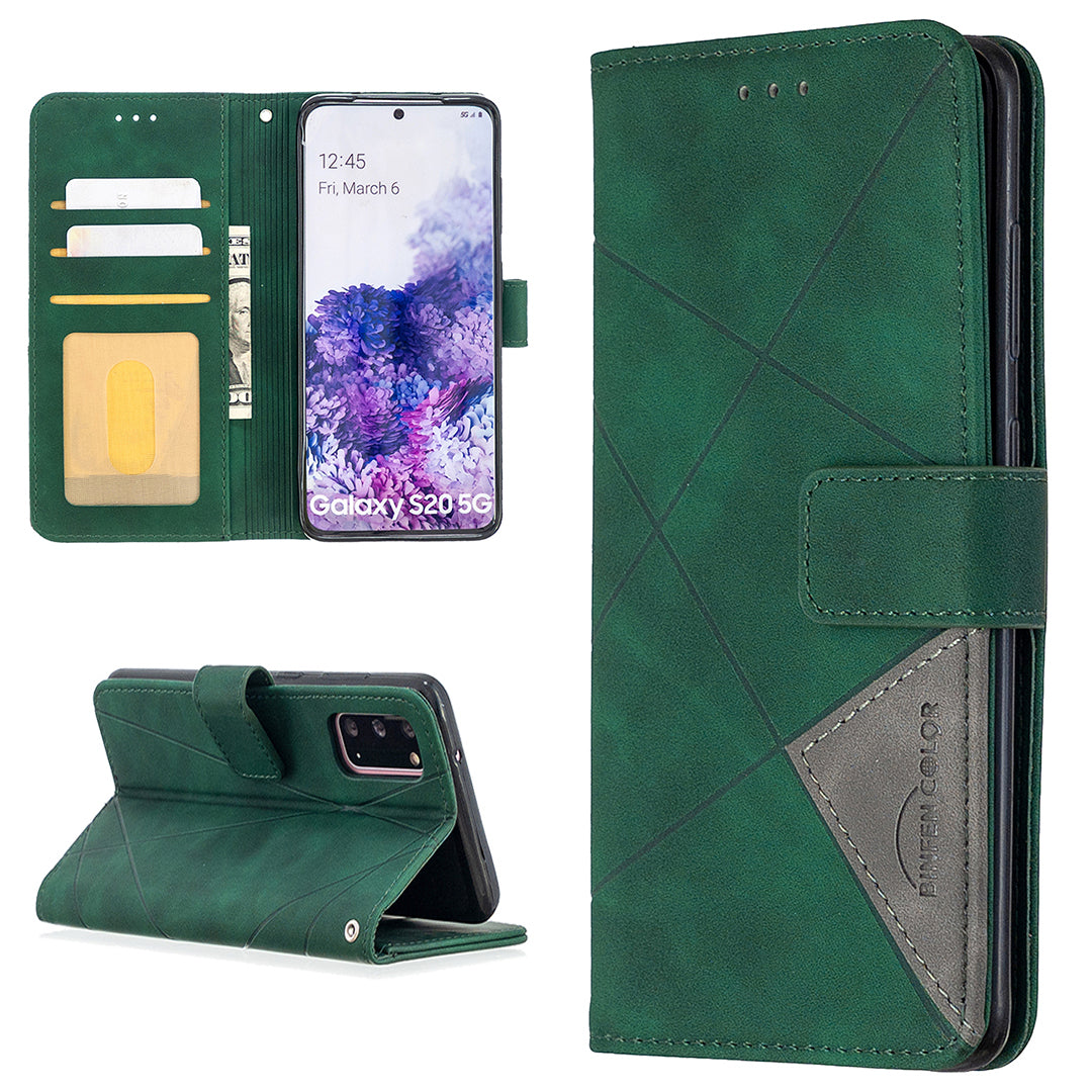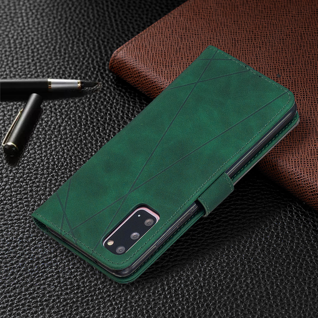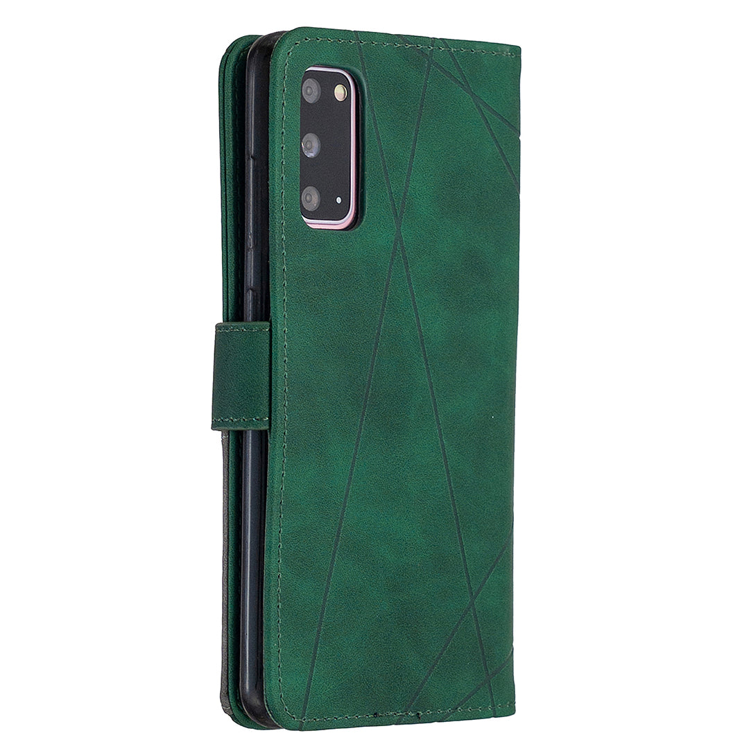 BF05 Style Geometric Texture Leather Cover for Samsung Galaxy S20 4G/S20 5G - Green