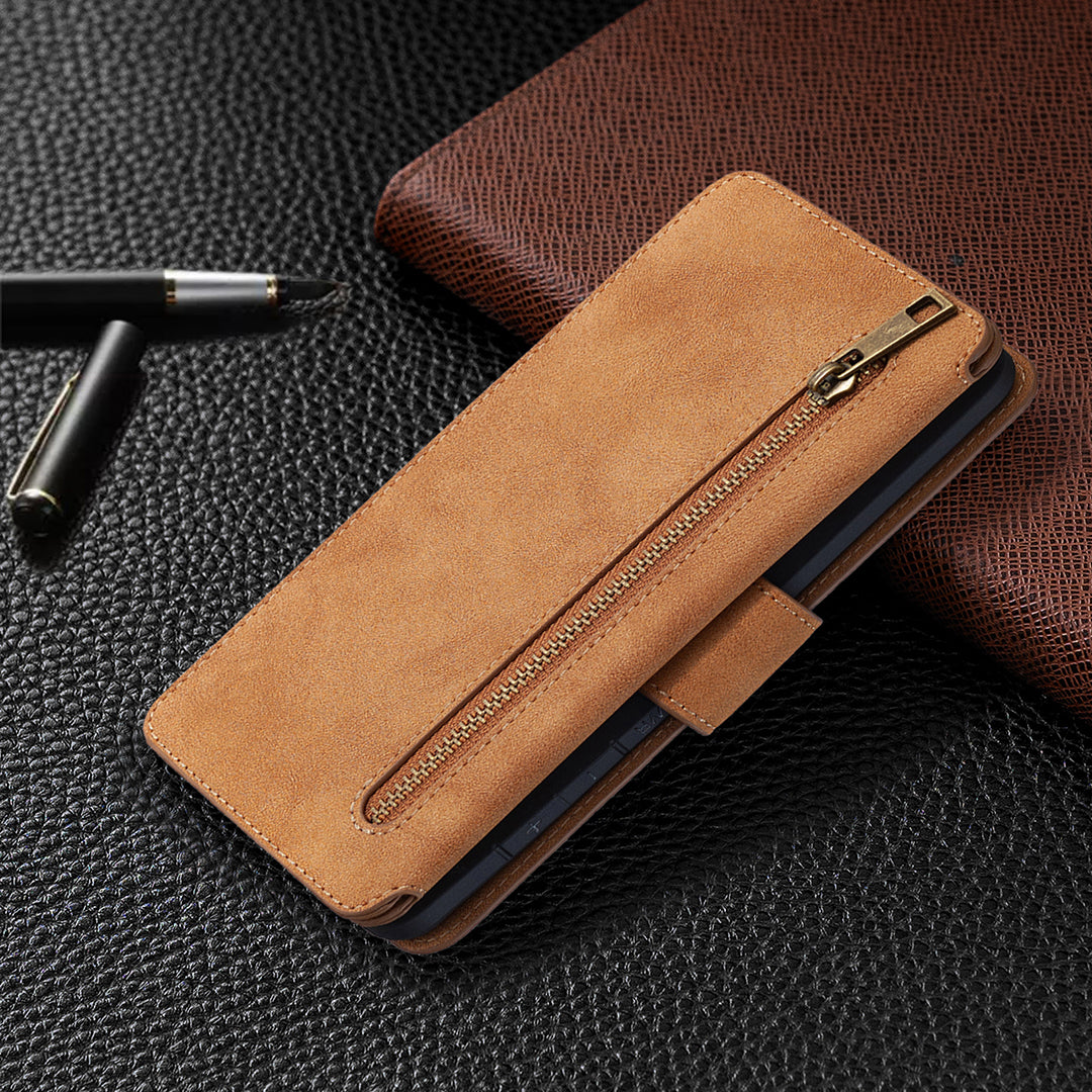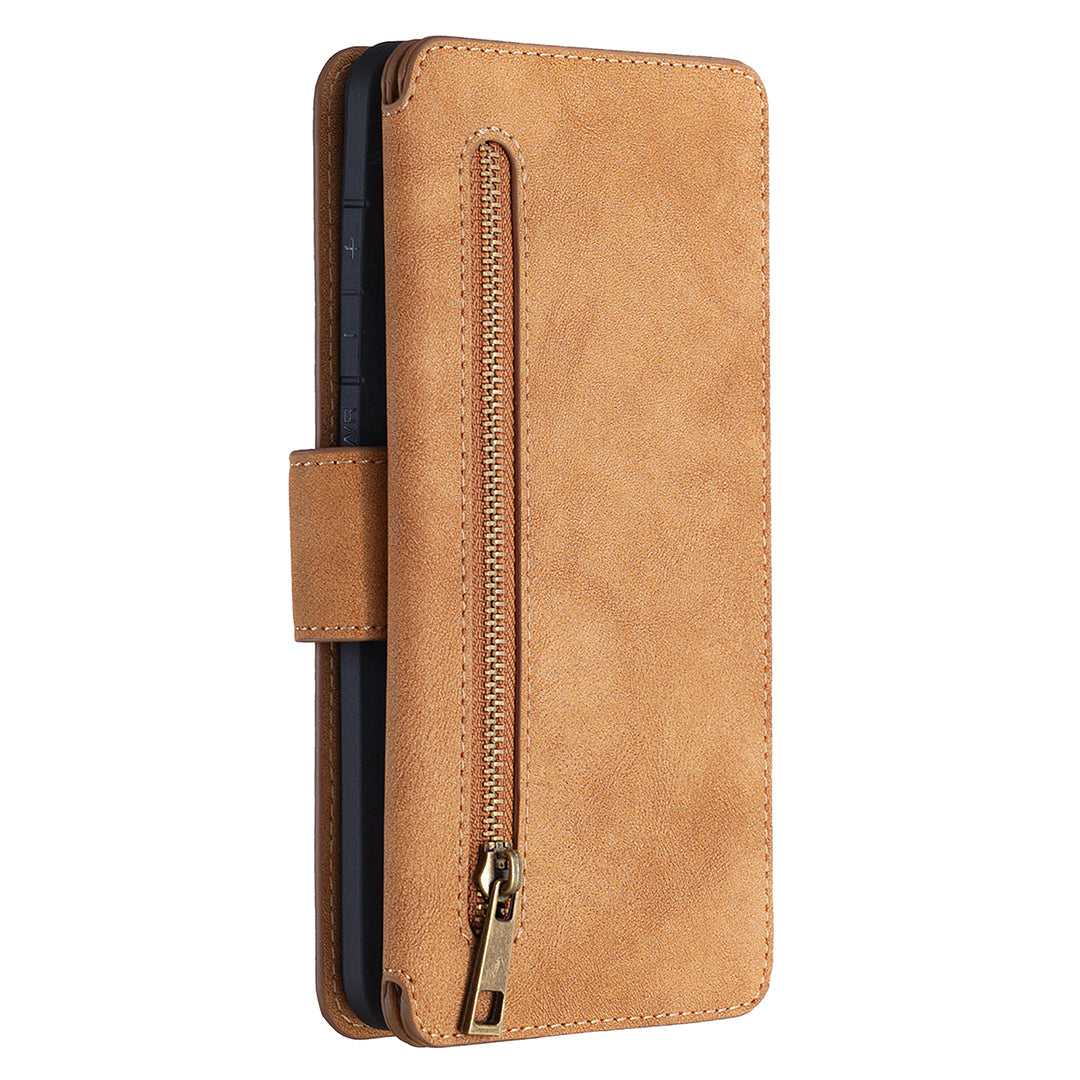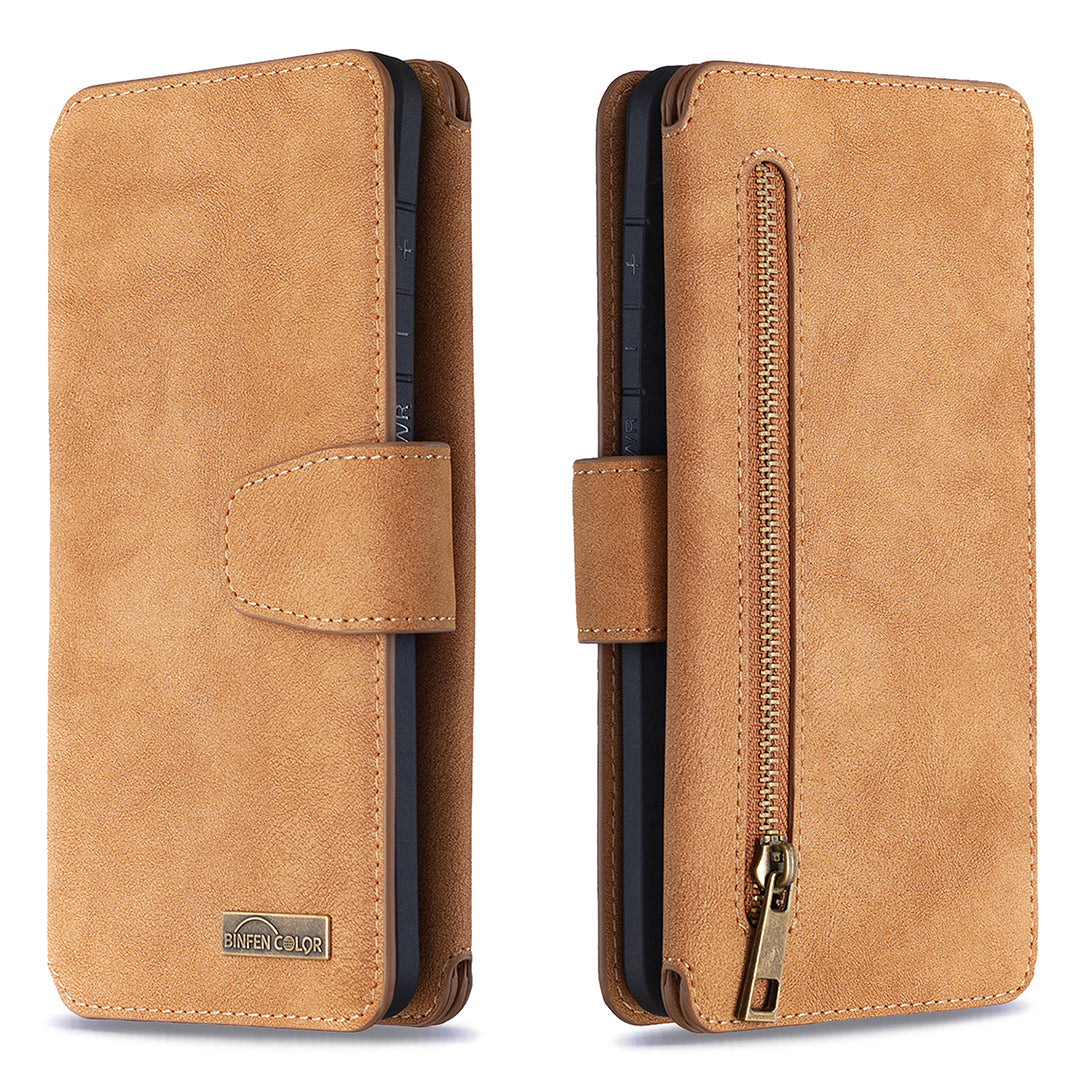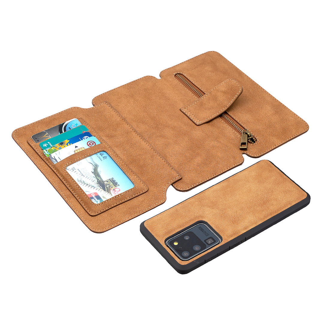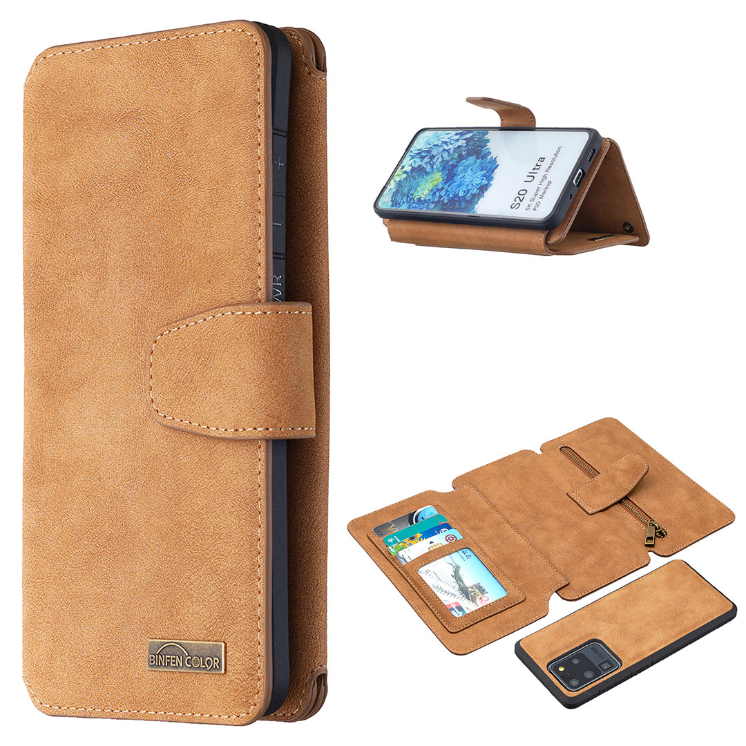 BF07 Detachable Matte Finish Leather Wallet Phone Cover with Zippered Pocket for Samsung Galaxy S20 Ultra - Brown