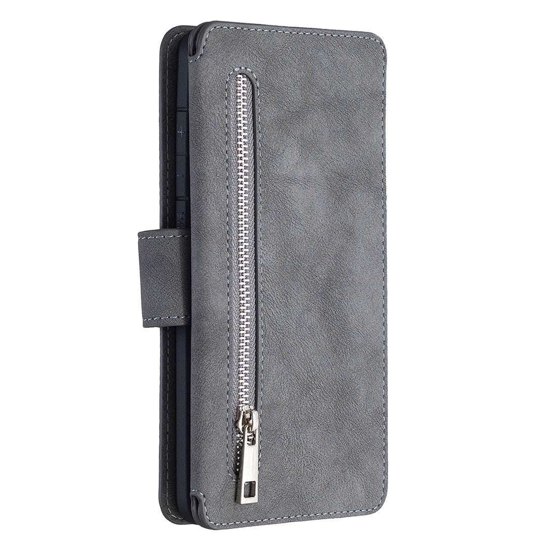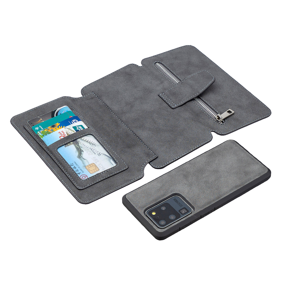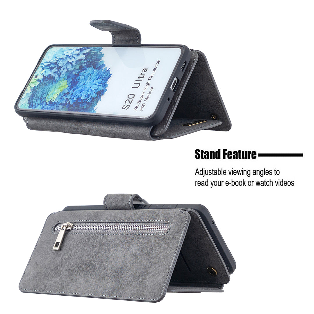 BF07 Detachable Matte Finish Leather Wallet Phone Cover with Zippered Pocket for Samsung Galaxy S20 Ultra - Grey