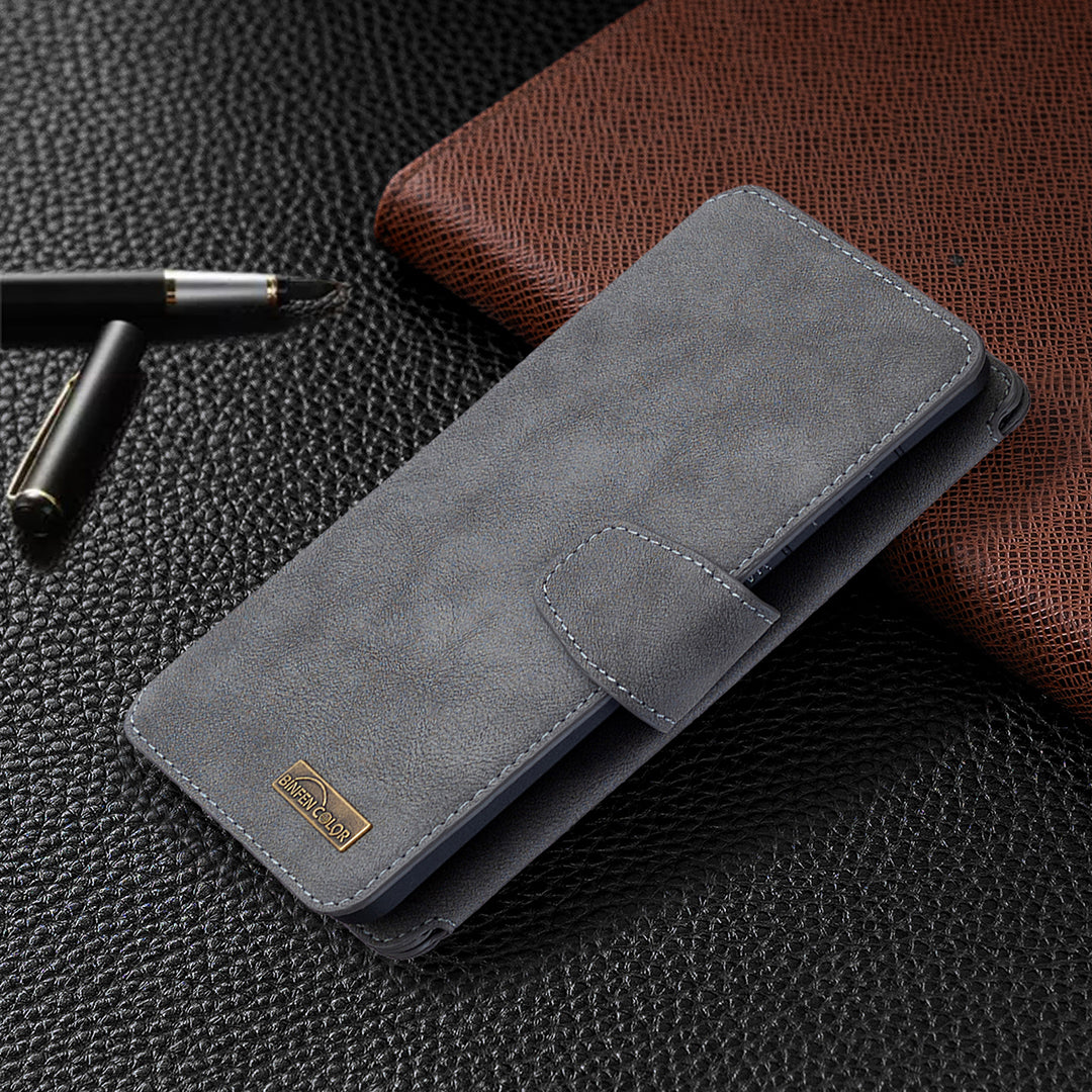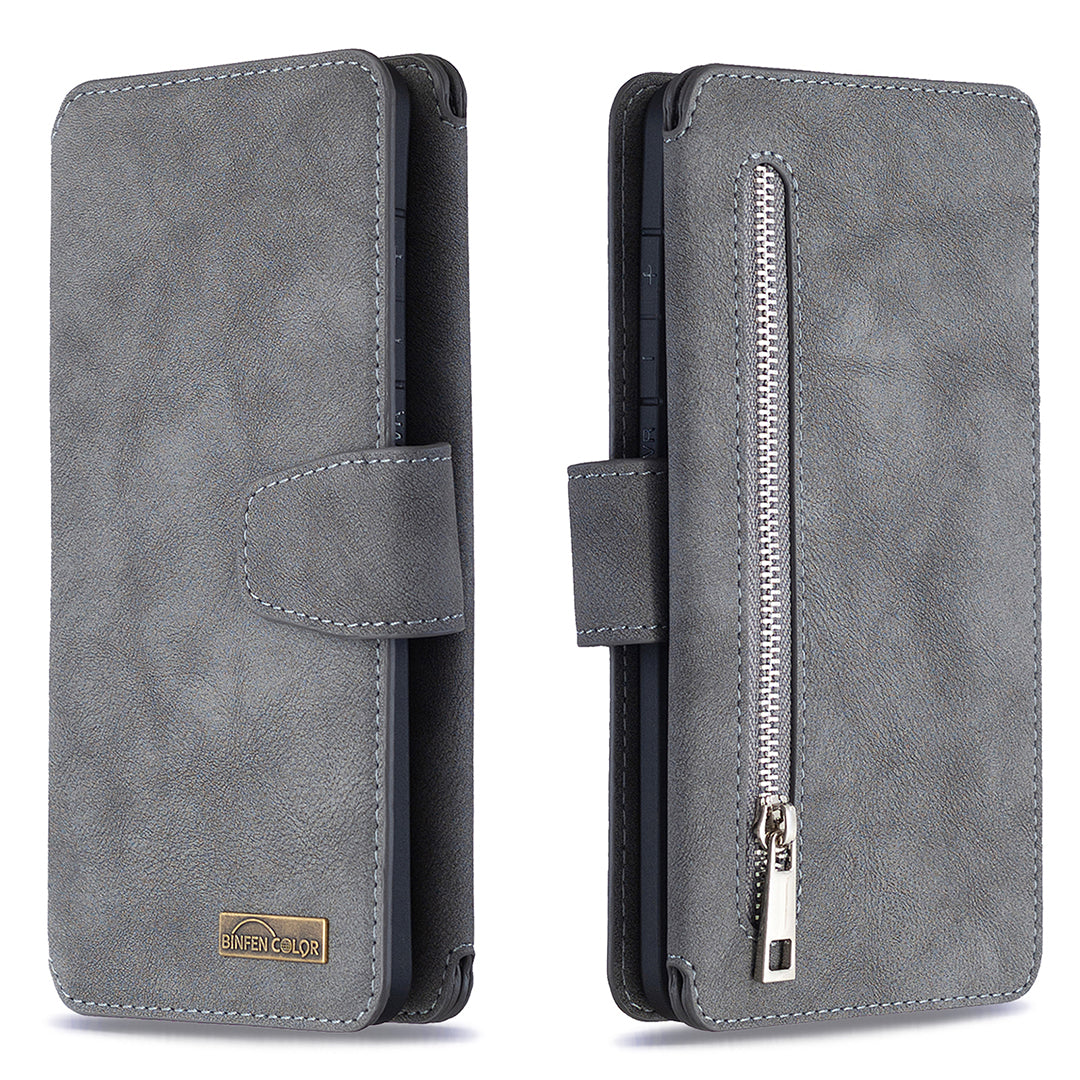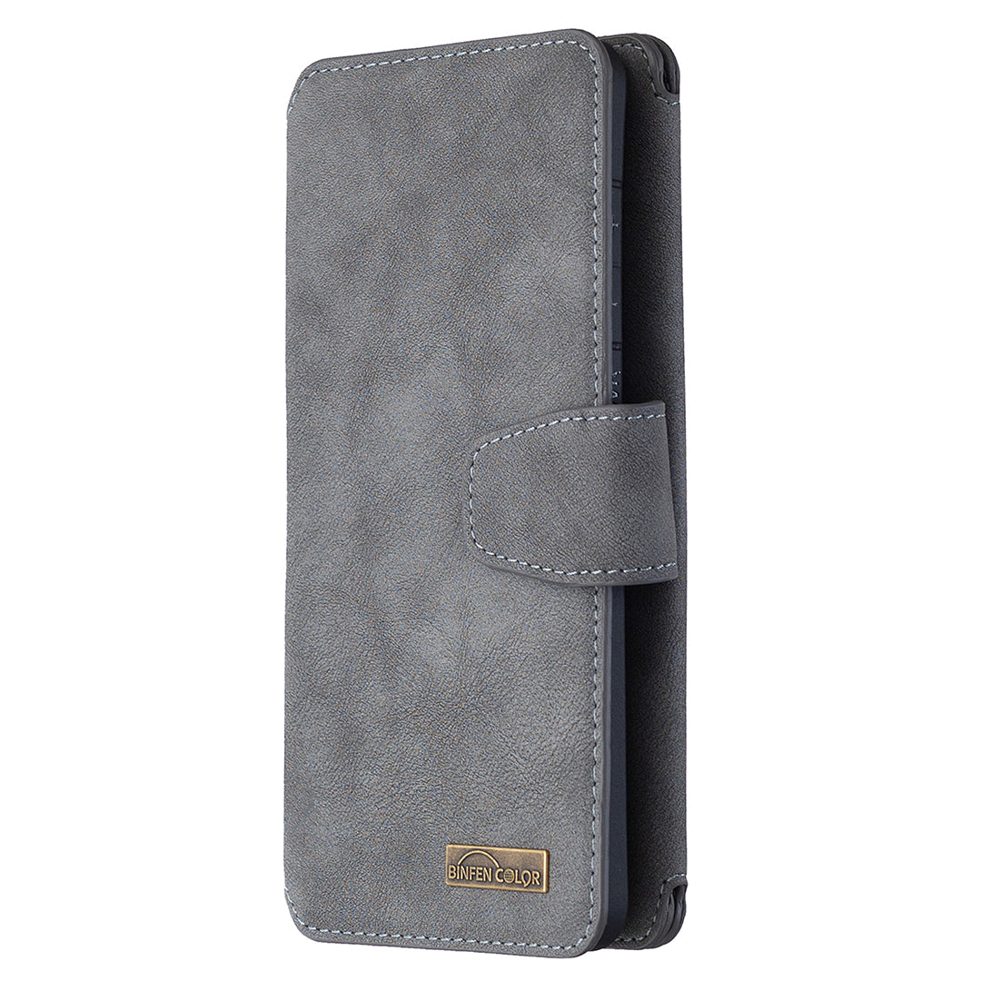 BF07 Detachable Matte Finish Leather Wallet Phone Cover with Zippered Pocket for Samsung Galaxy S20 Ultra - Grey