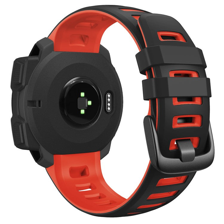 Bi-color Soft Silicone Watchband Replacement Bracelet Strap for Garmin Instinct / Instinct Esports - Black / Red
