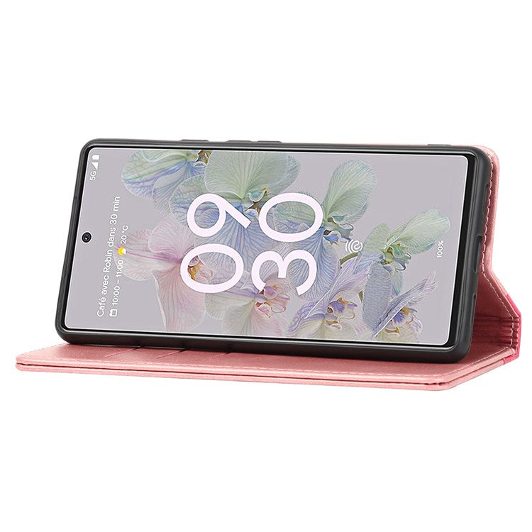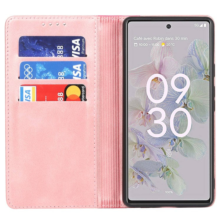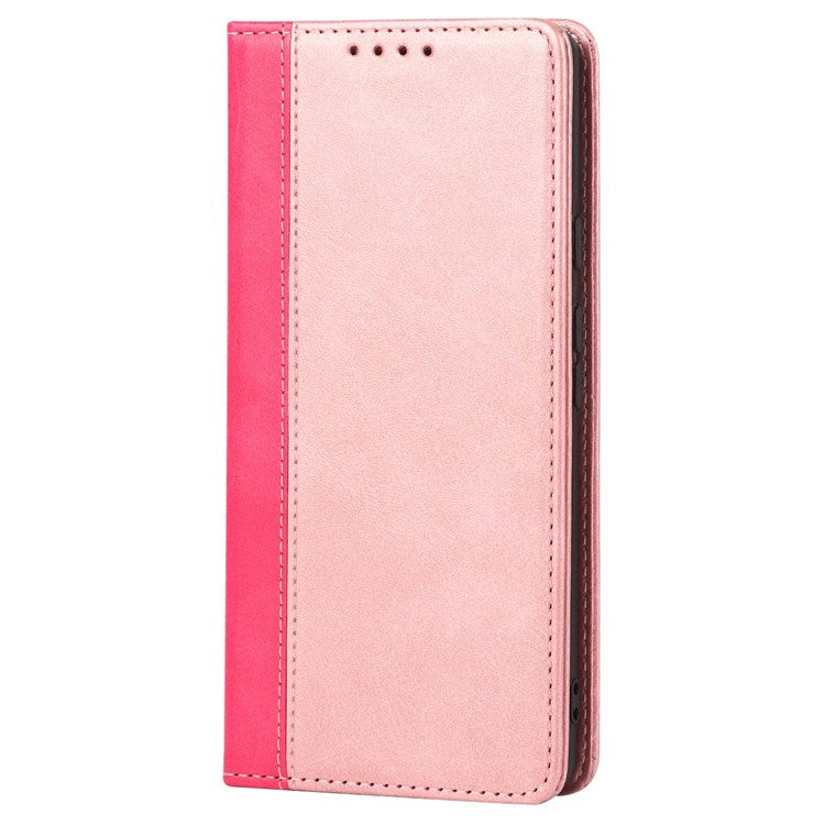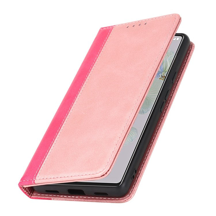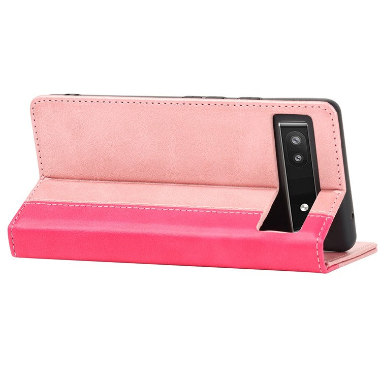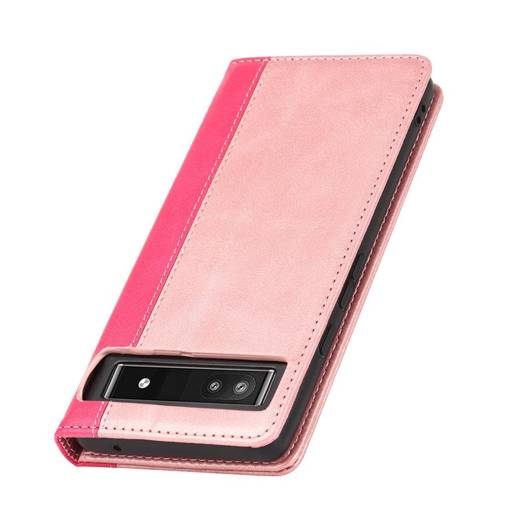 Bi-color Splicing Phone Case for Google Pixel 6a, Magnetic Auto-absorbed PU Leather Wallet Stand Flip Cover - Rose Gold / Rose