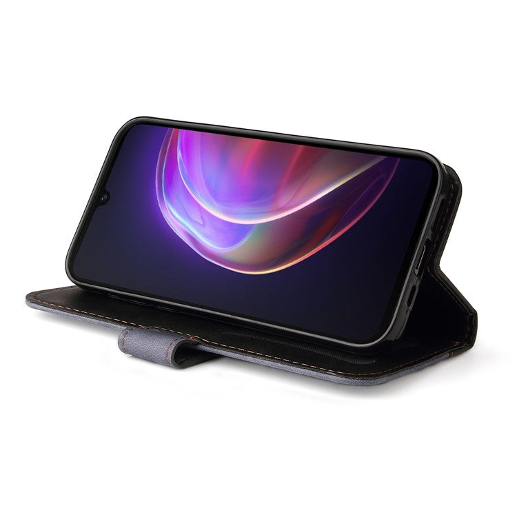Bi-color Style Soft PU Leather Phone Case Wallet with Strap for vivo V21 4G/5G - Grey
