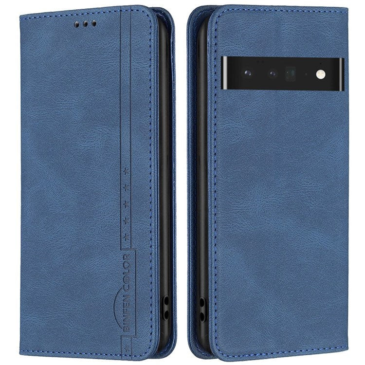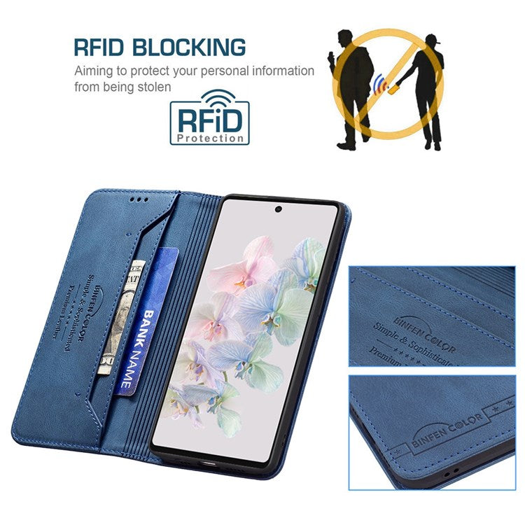 BINFEN COLOR BF Leather Series-5 for Google Pixel 7 Pro 5G RFID Blocking Wallet Phone Case PU Leather Stand Folio Cover - Blue