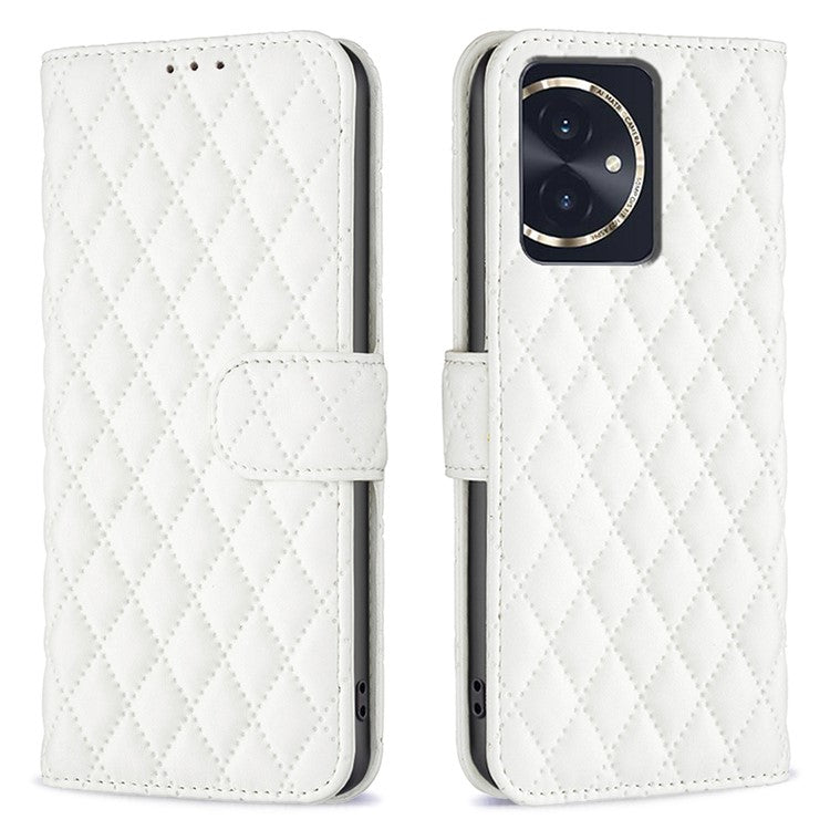 BINFEN COLOR BF Style-14 For Honor 100 5G Cell Phone Case Leather Wallet Anti-fall Cover - White