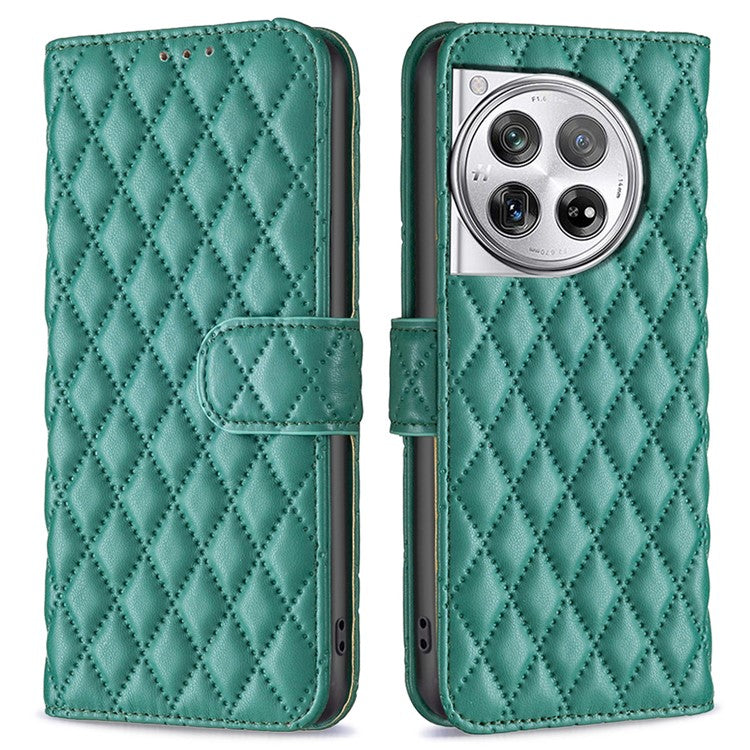 BINFEN COLOR BF Style-14 For OnePlus 12 5G Case Stand PU Leather Wallet Flip Cover Protector - Green
