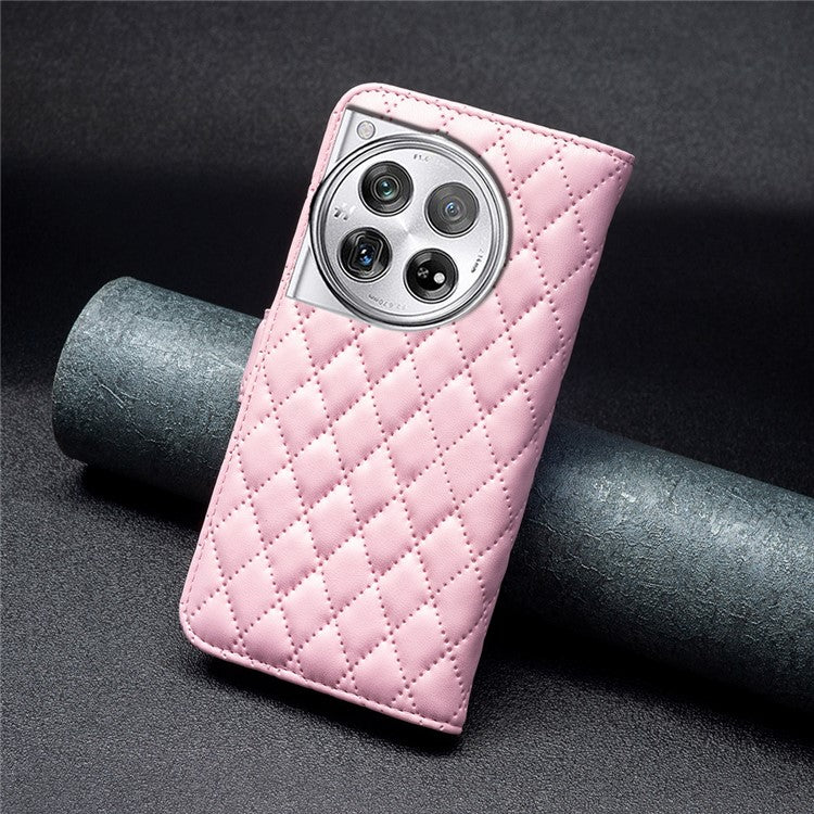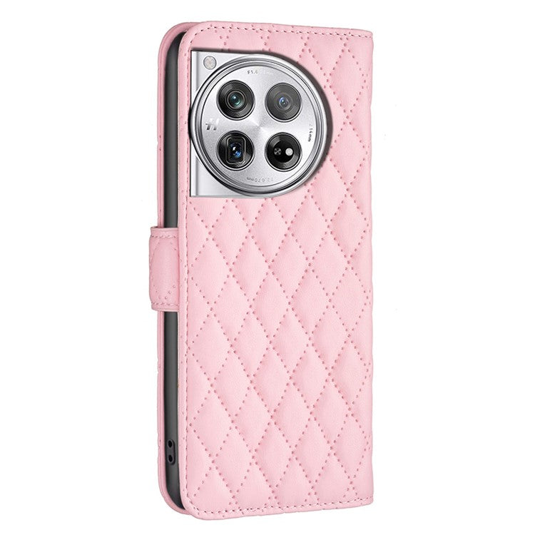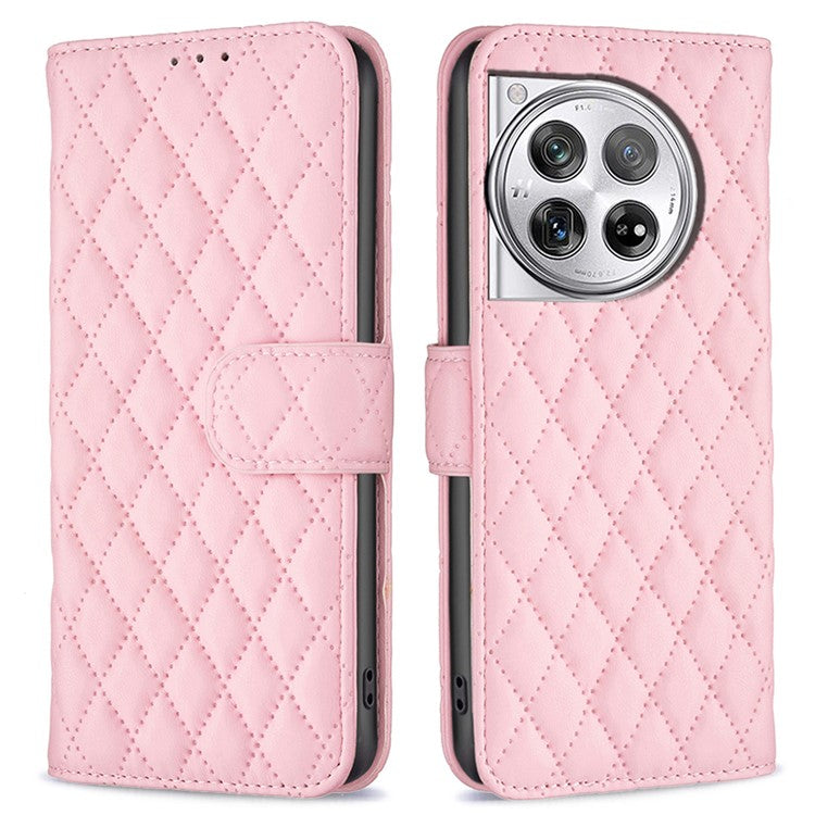 BINFEN COLOR BF Style-14 For OnePlus 12 5G Case Stand PU Leather Wallet Flip Cover Protector - Pink