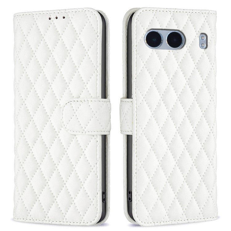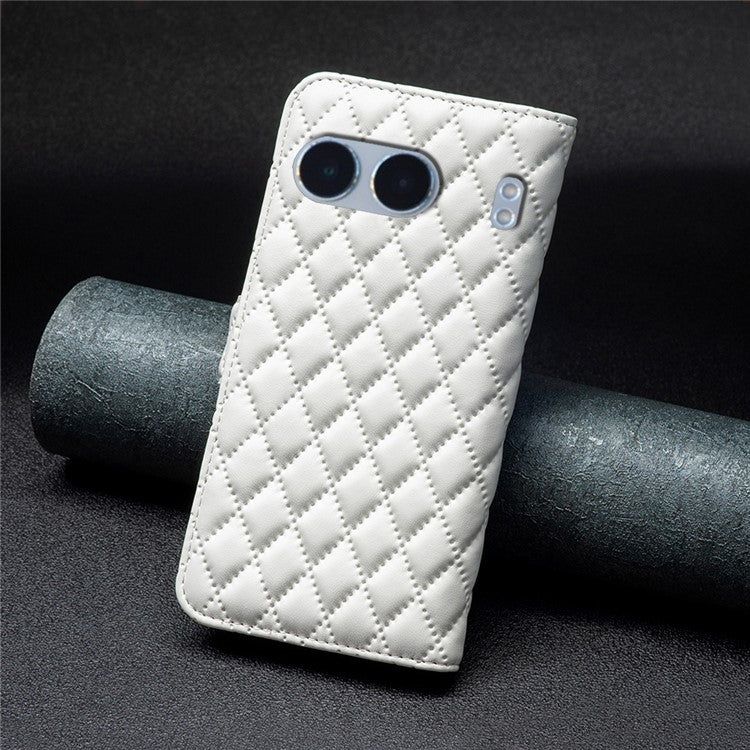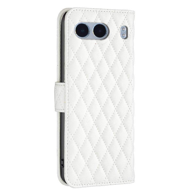 BINFEN COLOR BF Style-14 For OnePlus Nord 4 Case Rhombus Phone Leather Cover Stand - White