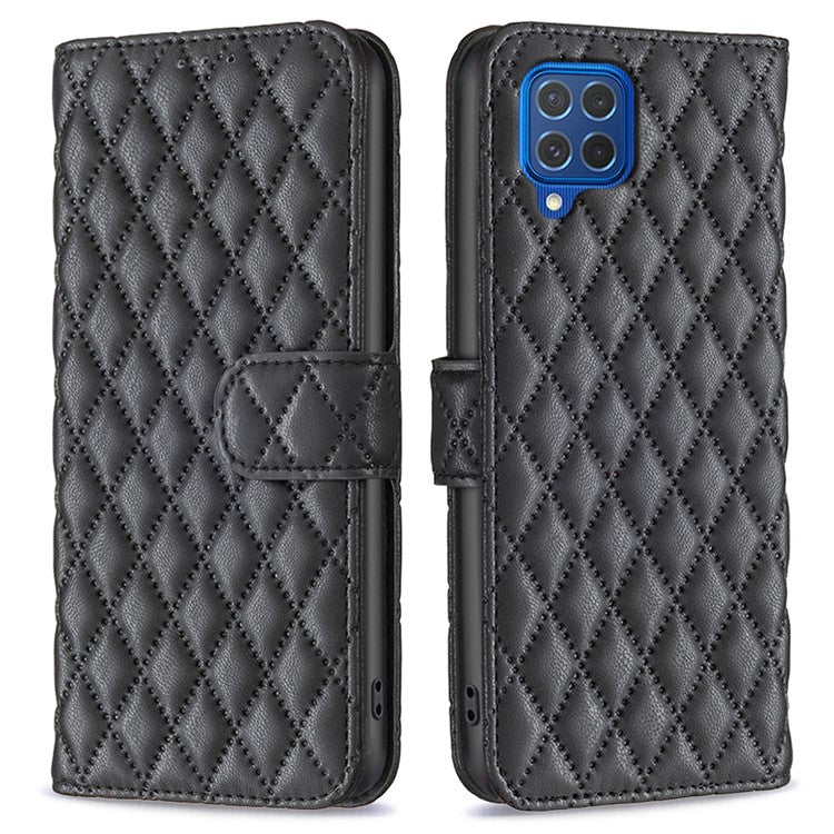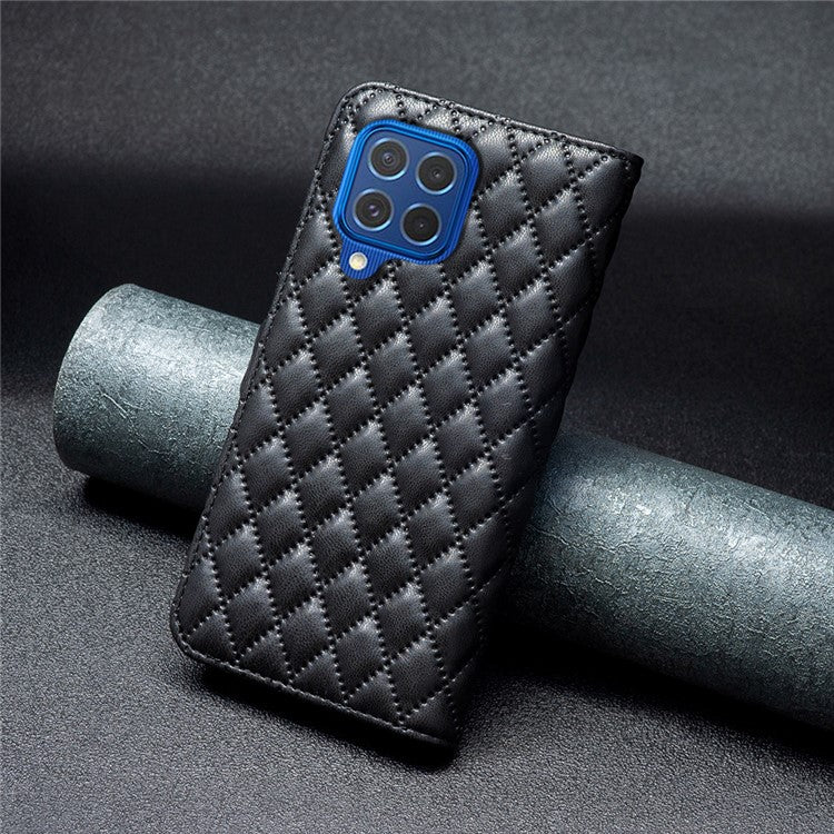 BINFEN COLOR BF Style-14 For Samsung Galaxy M62 / F62 Wallet Case Rhombus Leather Phone Cover - Black