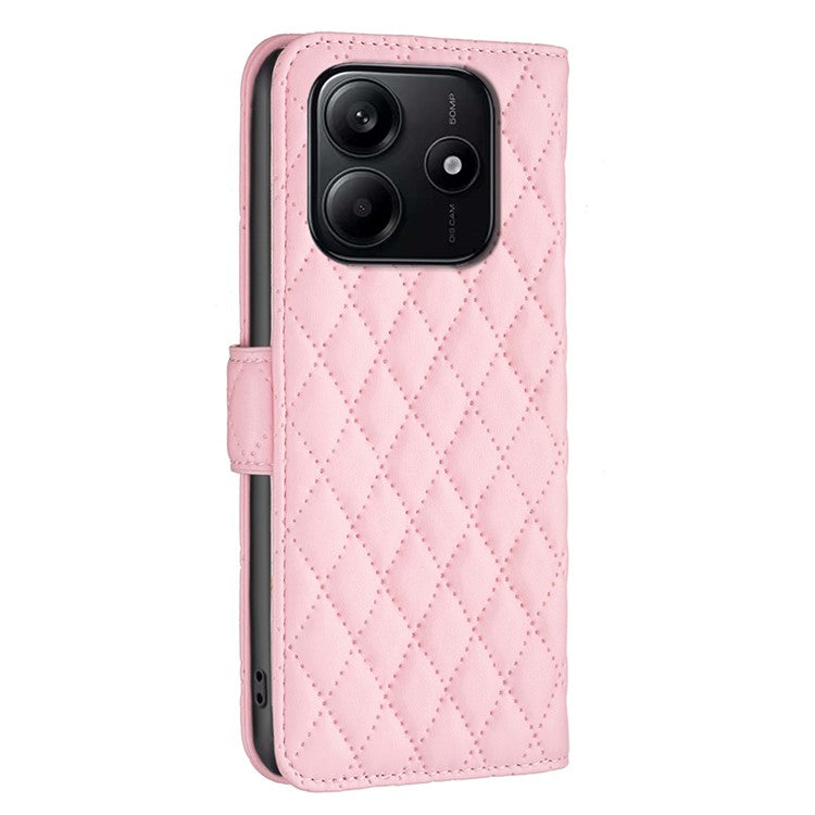 BINFEN COLOR BF Style-14 For Xiaomi Redmi Note 14 5G Case Rhombus Phone Leather Cover Stand - Pink