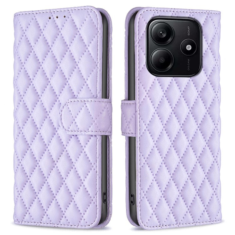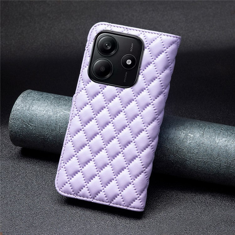 BINFEN COLOR BF Style-14 For Xiaomi Redmi Note 14 5G Case Rhombus Phone Leather Cover Stand - Purple