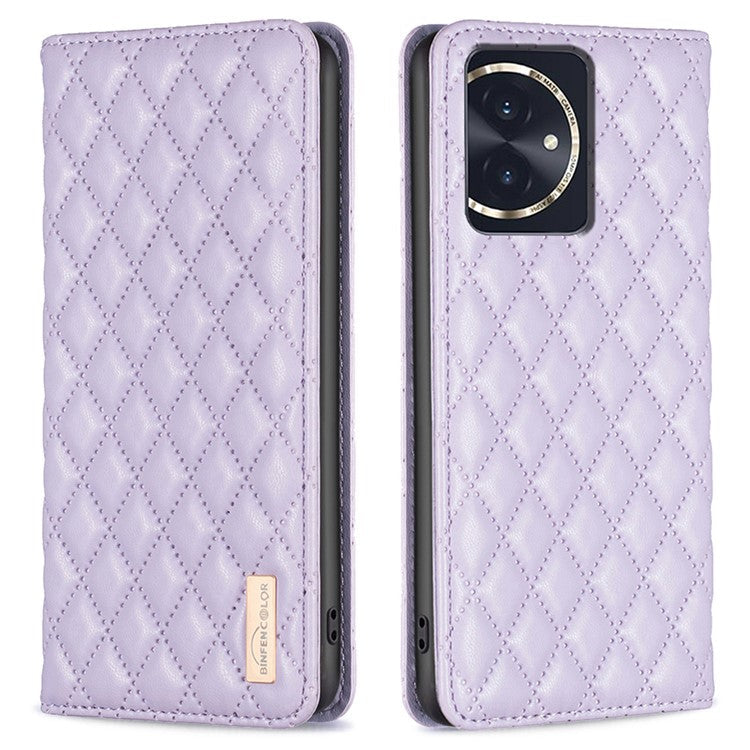 BINFEN COLOR BF Style-16 For Honor 100 5G Cell Phone Case Card Holder Leather Protection Cover - Purple