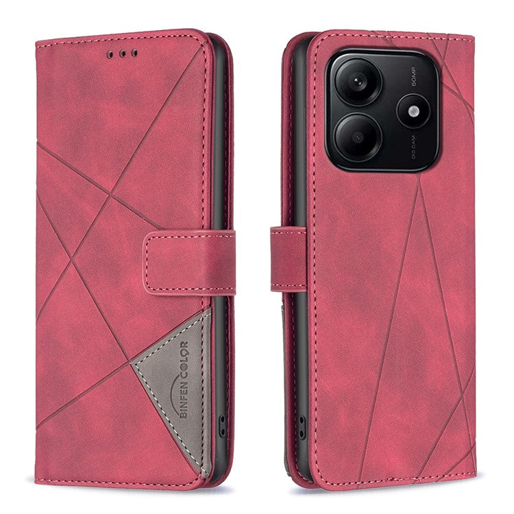BINFEN COLOR BF05 For Xiaomi Redmi Note 14 5G Case Leather Phone Cover Wallet Stand - Red