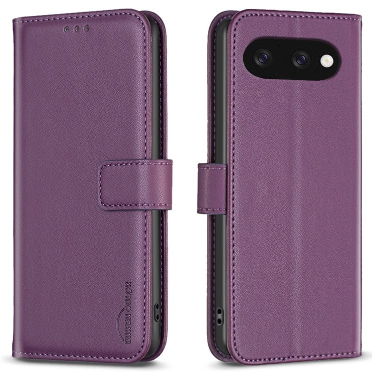 BINFEN COLOR BF17 For Google Pixel 9a Case Wallet Folio Flip Leather Cover - Dark Purple