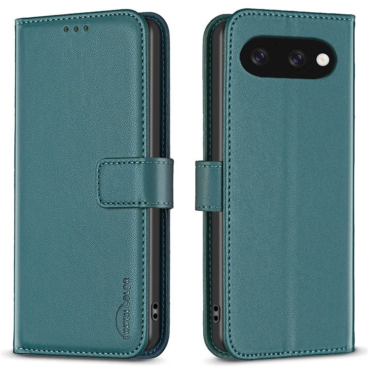 BINFEN COLOR BF17 For Google Pixel 9a Case Wallet Folio Flip Leather Cover - Green