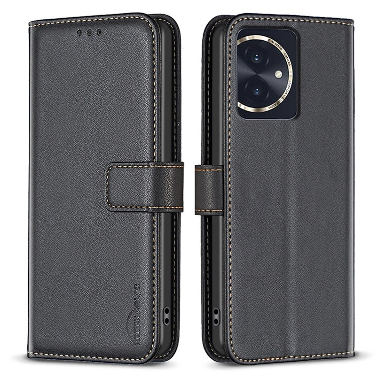 BINFEN COLOR BF17 For Honor 100 5G Cell Phone Case PU Leather Wallet Anti-drop Cover - Black