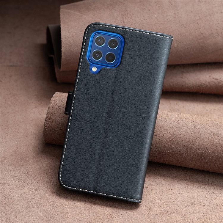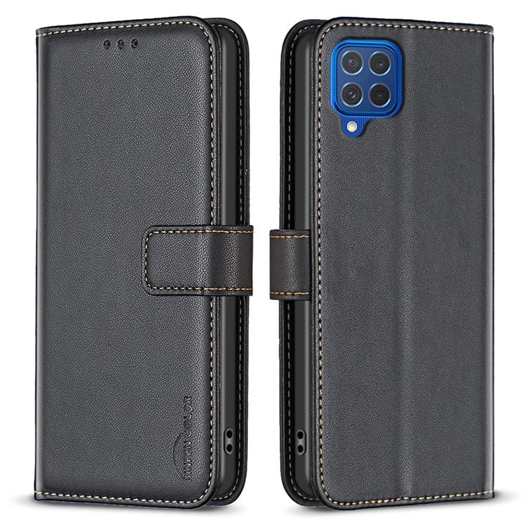 BINFEN COLOR BF17 For Samsung Galaxy M62 / F62 Case Flip Design PU Leather Full Protection Phone Cover - Black