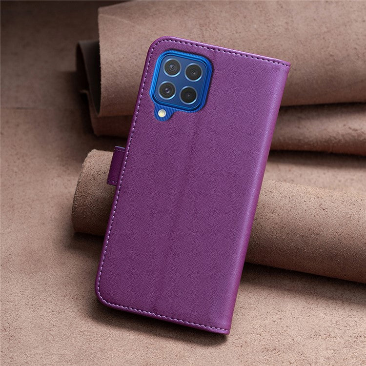 BINFEN COLOR BF17 For Samsung Galaxy M62 / F62 Case Flip Design PU Leather Full Protection Phone Cover - Dark Purple